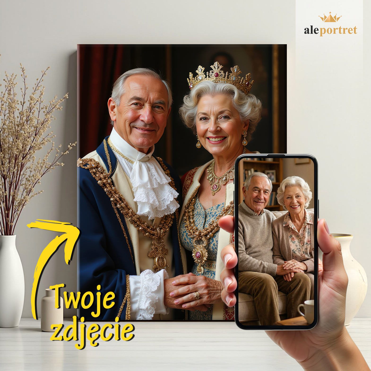 Portret dla pary. Stwórz unikalny portret jako wyjątkowy prezent na urodziny, rocznicę lub Walentynki. To piękny prezent dla Twojej drugiej połówki, rodziców lub teściów. Wysoka jakość wydruku zapewni estetyczne uzupełnienie wnętrza. Wyjątkowy prezent, który z pewnością zostanie doceniony.