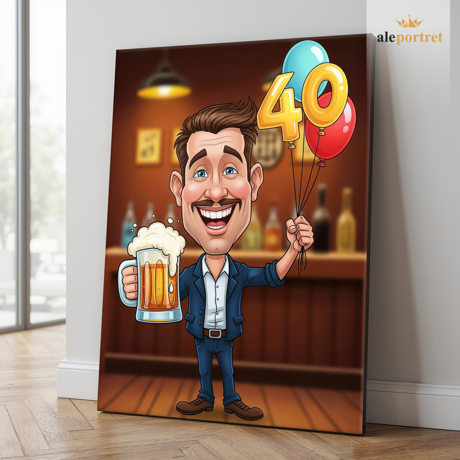 Karykatura z Twojego zdjęcia. Stwórz unikalny portret jako zabawny prezent na 40-te urodziny. Wysoka jakość wydruku zapewni estetyczne uzupełnienie wnętrza. Wyjątkowy prezent, który z pewnością zostanie doceniony.