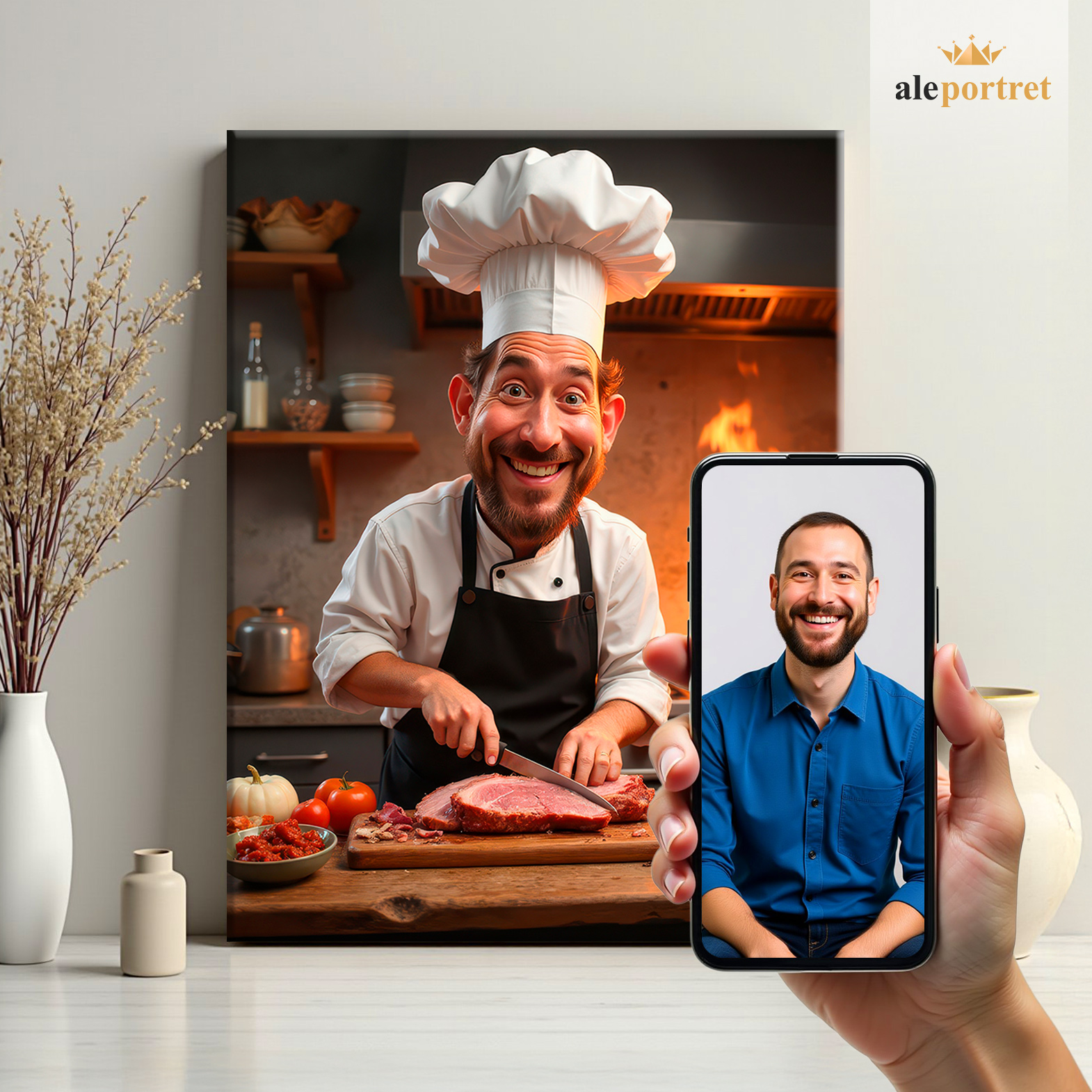 Karykatura z Twojego zdjęcia. Stwórz unikalny portret jako zabawny prezent na każdą okazję. Wysoka jakość wydruku zapewni estetyczne uzupełnienie wnętrza. Wyjątkowy prezent, który z pewnością zostanie doceniony.
