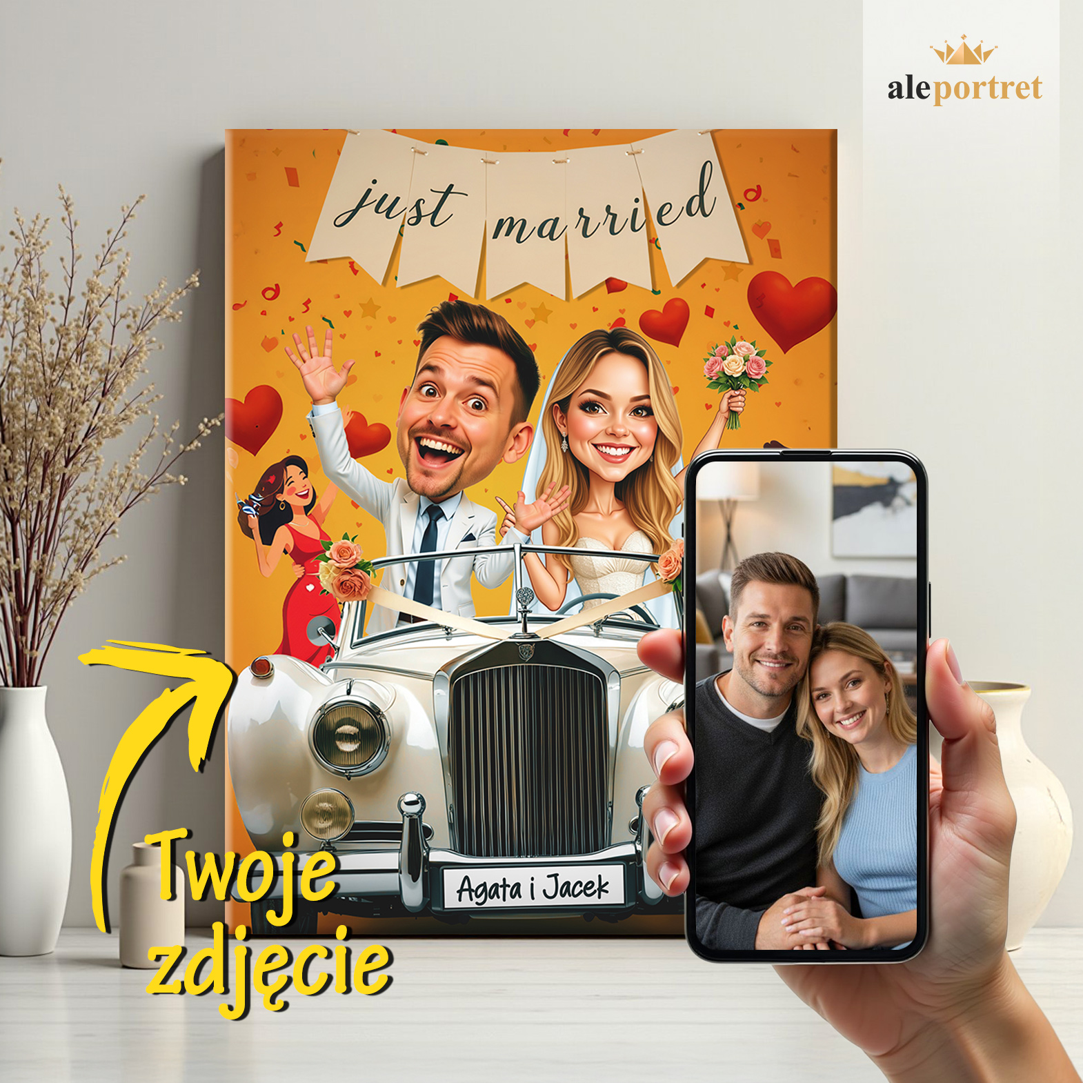 Karykatura z Twojego zdjęcia. Stwórz unikalny portret jako zabawny prezent dla Pary Młodej z okazji ślubu. Wysoka jakość wydruku zapewni estetyczne uzupełnienie wnętrza. Wyjątkowy prezent, który z pewnością zostanie doceniony.