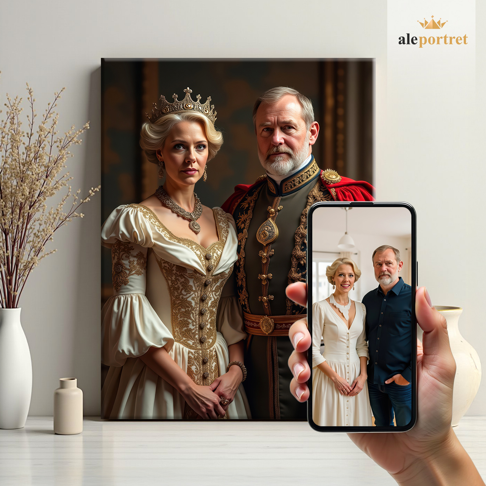 Portret dla pary. Stwórz unikalny portret jako wyjątkowy prezent na urodziny, rocznicę lub Walentynki. To piękny prezent dla Twojej drugiej połówki, rodziców lub teściów. Wysoka jakość wydruku zapewni estetyczne uzupełnienie wnętrza. Wyjątkowy prezent, który z pewnością zostanie doceniony.
